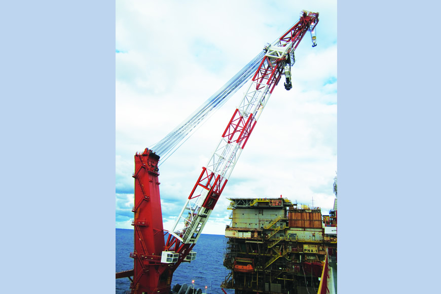 石油鉆井平臺專用起重機用于超萬噸海上石油鉆井平臺、船舶等海工裝備設施的吊裝建造。與傳統建造工藝相比,整體單次吊裝可為用戶節省200多萬個工時,建造周期縮短30%以上。大連重工2006年為萊福士海洋工程有限公司設計制造的20000t石油鉆井平臺專用橋式起重機已成功應用于超萬噸海上石油鉆井平臺的整體吊裝合攏。