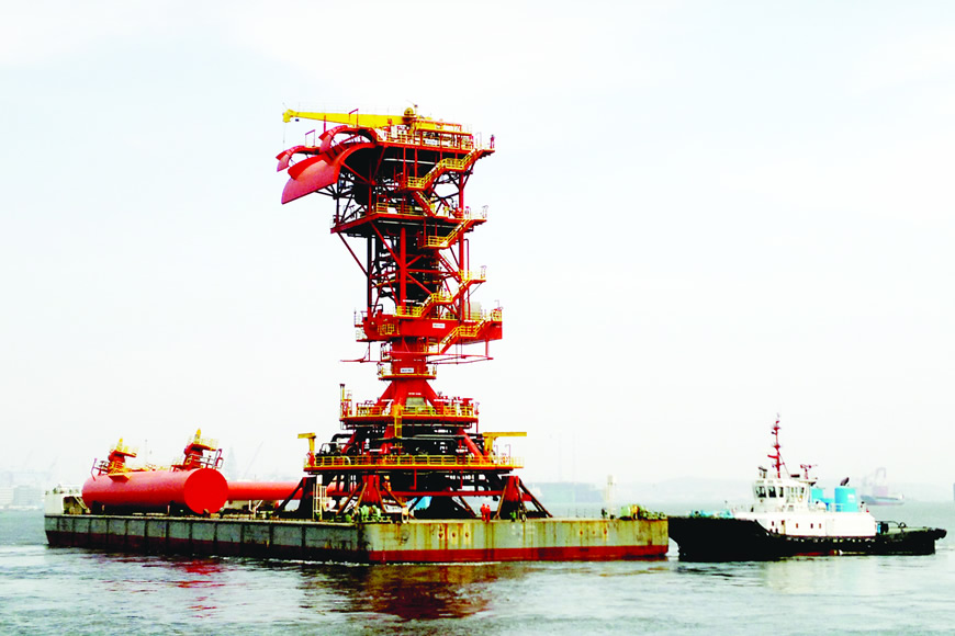 單點系泊是海洋石油開發工程中的重要設施之一。大連重工為中海油研制的單點系泊產品用于系泊海上石油加工處理裝置和油氣傳輸,設備總重為2144噸,企業承擔了單點系泊系統中建造工藝的制定、整體鋼結構的制造、全部鑄件的鑄造、全部鑄鍛件的機加工以及除管系和電氣設備外所有部件的裝配。